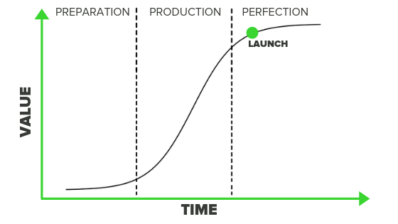 Phase 1 involves the time it takes to plan before you begin actually working on a project. During this phase, very little quality is added directly to the finished piece. Phase 2 involves the actual work itself, where the bulk of the quality is added to the finished product. Phase 3 involves perfecting the work to make sure it meets certain quality standards before it's deemed complete. To increase productivity, you should focus on shortening the time it takes to get to this point. At the same time, as you add more inputs in Phase 3 you begin to receive diminishing returns -this should be avoided.