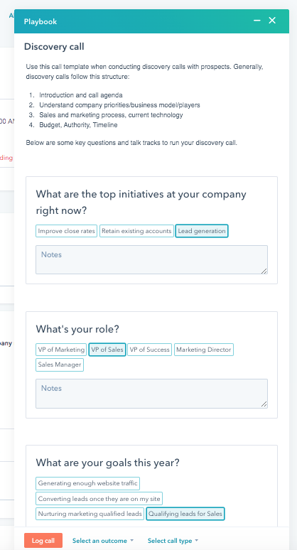 For example, if a new rep is making a discovery call, they can pull up a discovery call playbook and be prompted with resources like what questions to ask. Reps can even take notes directly in the playbook as they’re using it to guide their outreach.